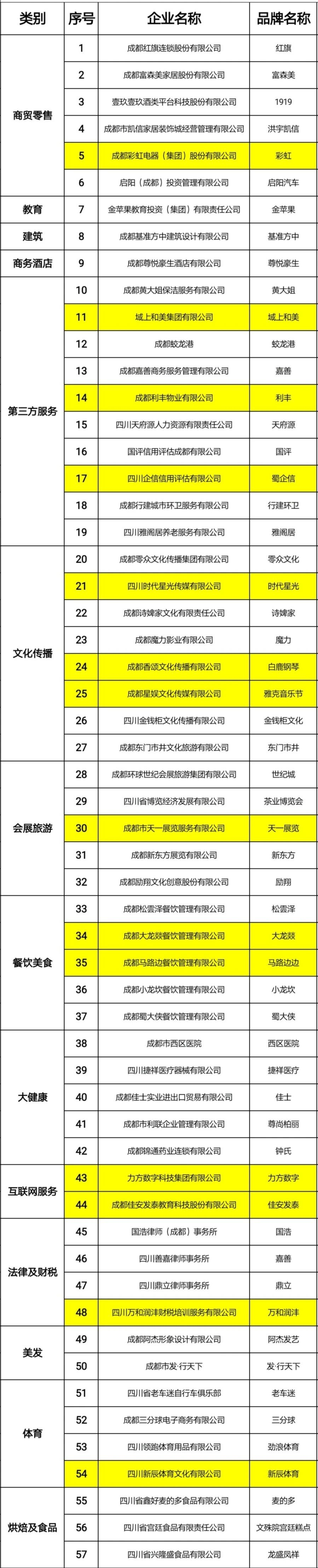 经过信用协查、专家评审会和网络投票等环节评定,以下武侯区企业入选成都市服务业百强品牌,让我们恭喜他们!(表格内标黄的企业)