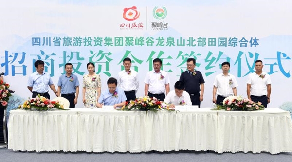 7月8日,四川旅投集团聚峰谷龙泉山北部田园综合体招商投资合作签约仪式在成都金堂淮州新城油橄榄主题公园举行,多家头部资源平台企业、商会、协会与该综合体项目签约,建立招商投资合作关系。