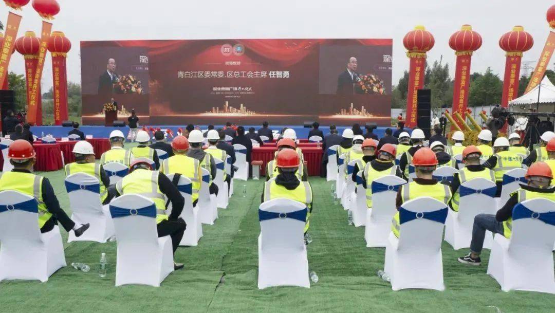 青白江区委常委、总工会主席任智勇,深业集团副总裁严中宇,成都市及青白江区近20家企事业单位领导参加开工仪式。