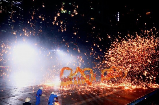 据悉,为寻找一种最特别的点亮方式,导演团队研究了成都本地的民风民俗,最终选择了位于锦江末端的黄龙溪特有的“烧火龙”传统舞蹈,让起源于南宋的火龙第一次横跨锦江水面。