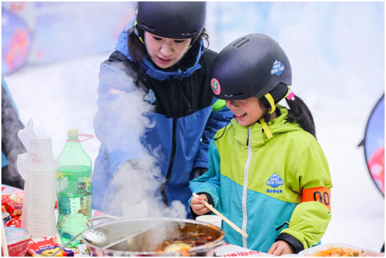 仪式后,依托成都融创雪世界丰富的娱雪项目,与会嘉宾参与了雪合战、雪地拔河等丰富的雪上游戏活动,初次体验滑雪的魅力。更在银装素裹的冰天雪地里, 通过 “雪地火锅”经历了一场别样的美食之旅。