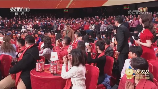 2022年的春晚同样不乏大量的广告赞助商。最显而易见的,是早早准备好15亿元红包和实物的独家互动合作伙伴京东。除此之外,还有在春晚开始前十分钟压时登场的:包括格力、伊利、中国移动、飞鹤等在内的30多家企业品牌;在主持人口播中出现的古井贡酒和小米手机;以及摆在观众席上,镜头多次“不经意间”扫过的娃哈哈。
