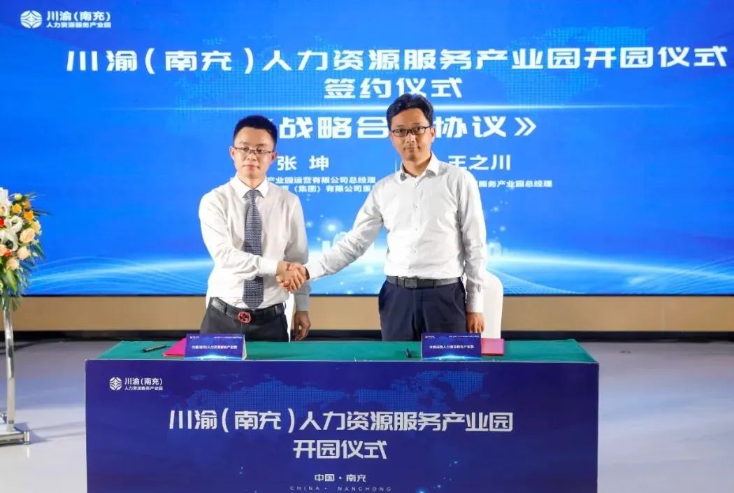 开园仪式中,中国成都人力资源服务产业园与川渝(南充)人力资源服务产业园签署《战略合作协议》。