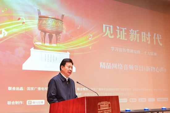 李群在致辞中指出,新时代的这十年,全国革命文物工作取得了历史性成就,特别是在征集新时代物证、举办新时代主题展览、讲好新时代故事方面取得积极成效和广泛影响。国家广播电视总局、国家文物局聚焦新时代、新发展、新物件,联合出品网络音频节目《见证新时代·新物心声》,围绕反映新时代伟大实践和伟大成就的代表性新物件,精心录制兼具表现力、传播力、影响力的网络音频作品,并通过上百家主流媒体及新媒体平台让“新物”表“心声”,以真人、真事、真情实感,讲好我们正在经历的新时代故事。创意出新知,匠心造精品。国家文物局将与国家广播电视总局携手合作,坚持守正创新,促成资源整合,充分发挥内容优势、平台优势,着力打造一档有温度、有内涵、有特色的精品力作,为学习宣传贯彻党的二十大精神营造浓厚氛围,增强全面建设社会主义现代化国家、全面推进中华民族伟大复兴的精神力量。
