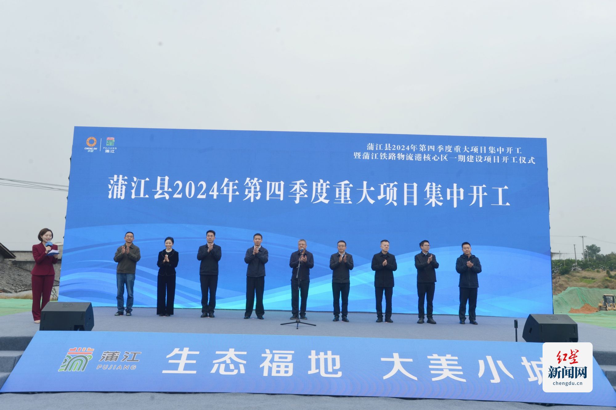 2024年10月31日,蒲江县2024年第四季度重大项目集中开工暨蒲江铁路物流港核心区一期建设项目开工仪式举行。成都市人民政府副市长吴皓,蒲江县委书记、一级巡视员蒲发友,蒲江县委副书记、县长赵钢,蒲江县政协主席陈鑫,蒲江县委副书记、寿安街道党工委书记张吉广,成都市对外开放合作促进中心副主任、市商务局一级调研员杨绍华,成都市经信局市新经济委产业协作处处长、一级调研员李映晖,成都市交通运输局建设管理处处长吴三育,成都市口岸物流办一级调研员张廷友出席。